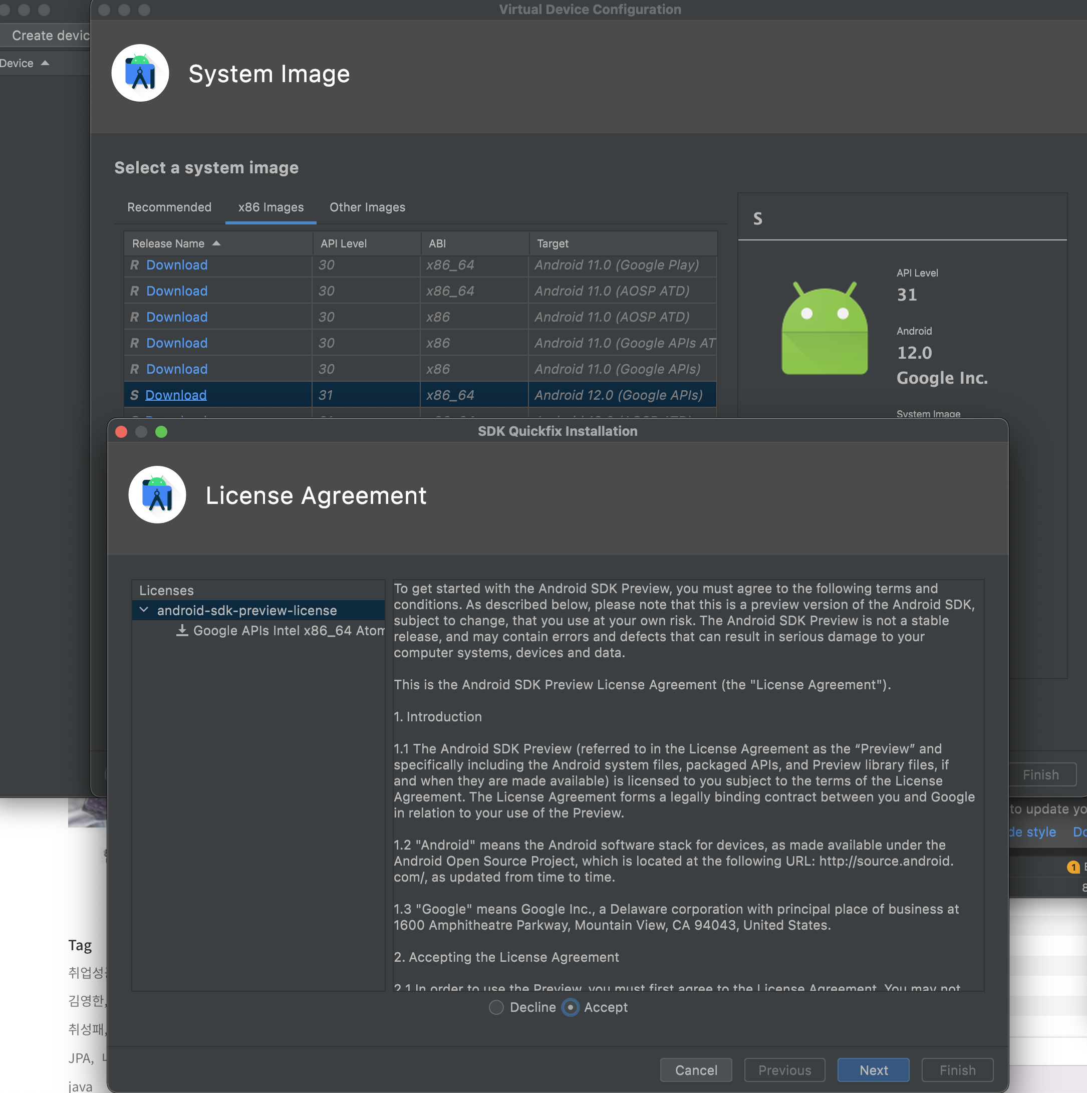 내가 선택한 안드로이드 시뮬레이터 버전 다운로드