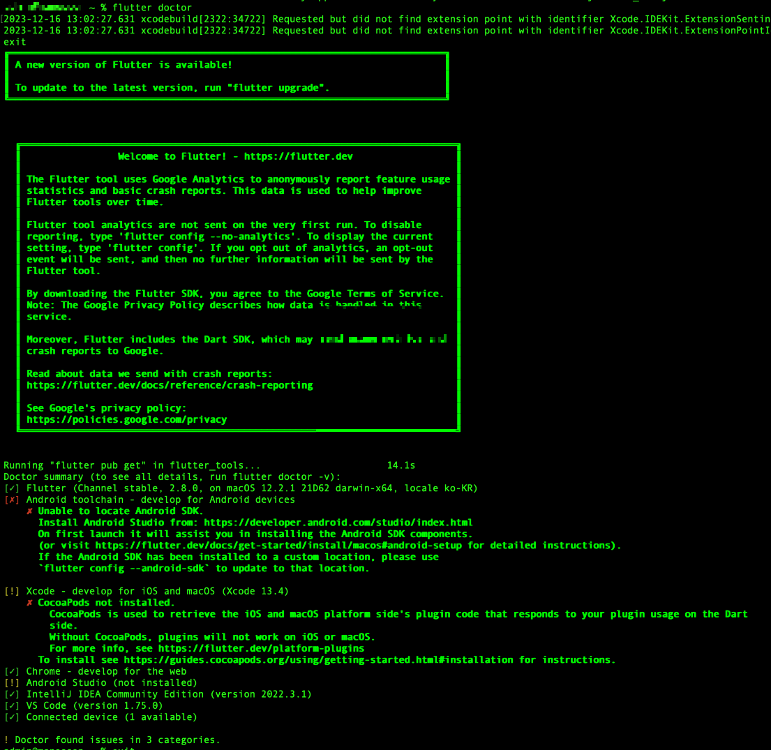 확인후 flutter doctor를 다시 입력해본다
