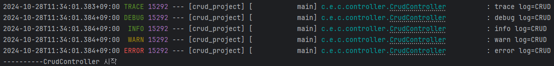 root를 적용 안해줄 경우 기본으로 info로 설정되며 그 이상의 로그 레벨은 출력되지 않는다.